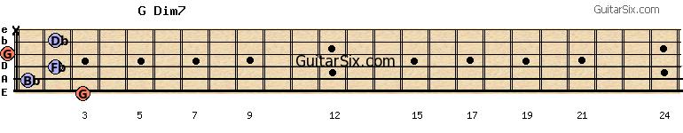 Scales that contain this chord's notes G-Bb-Db-Fb