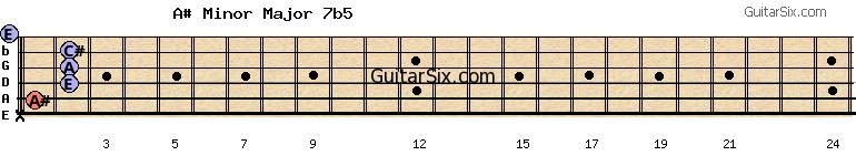 x-1-2-2-2-0 a#minormajor7b5 guitar chord
