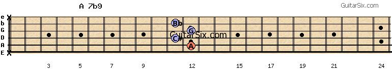 Scales that contain this chord's notes A-C#-E-G-Bb