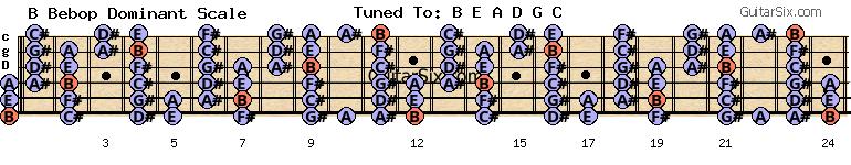 b-e-a-d-g-c b bebop dominant scale for guitar