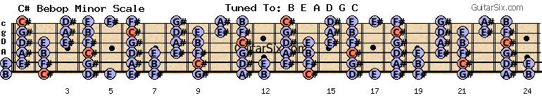 b-e-a-d-g-c c# bebop minor scale for guitar