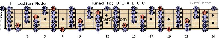 b-e-a-d-g-c c# f# lydian mode for guitar