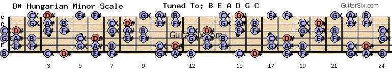 b-e-a-d-g-c d# hungarian minor scale for guitar