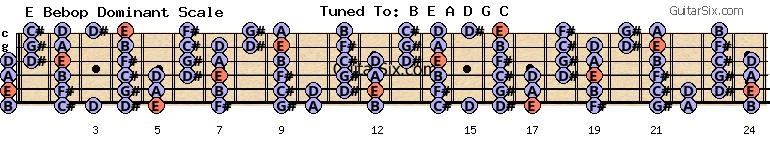 b-e-a-d-g-c e bebop dominant scale for guitar