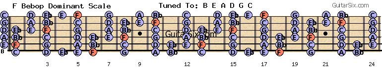 b-e-a-d-g-c f bebop dominant scale for guitar