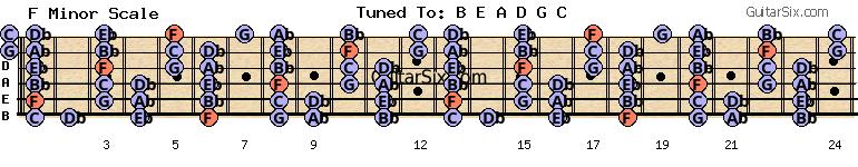 b-e-a-d-g-c f minor scale for guitar