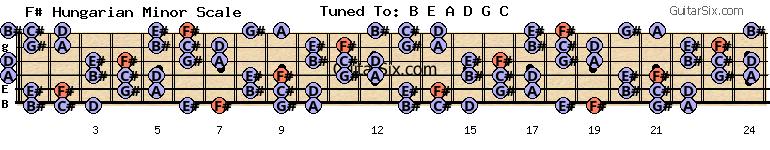 b-e-a-d-g-c f# hungarian minor scale for guitar