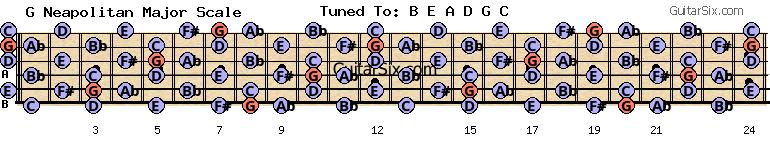b-e-a-d-g-c g neapolitan major scale for guitar