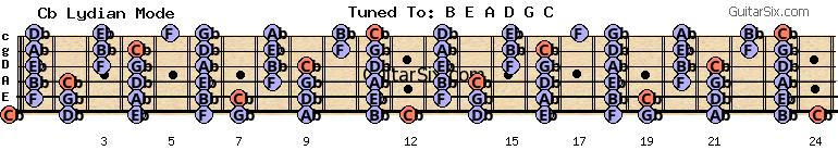 b-e-a-d-g-c gb cb lydian mode for guitar