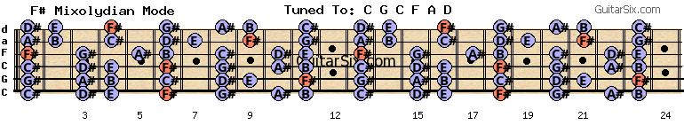 c-g-c-f-a-d b f# mixolydian mode for guitar