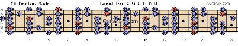 c-g-c-f-a-d f# g# dorian mode for guitar