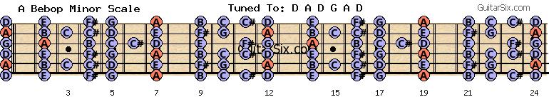 d-a-d-g-a-d a bebop minor scale for guitar