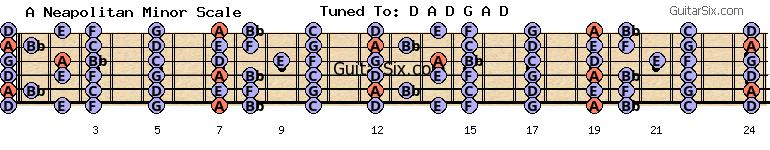 d-a-d-g-a-d a neapolitan minor scale for guitar
