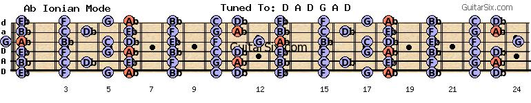 d-a-d-g-a-d ab ab ionian mode for guitar