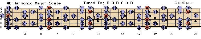 d-a-d-g-a-d ab harmonic major scale for guitar