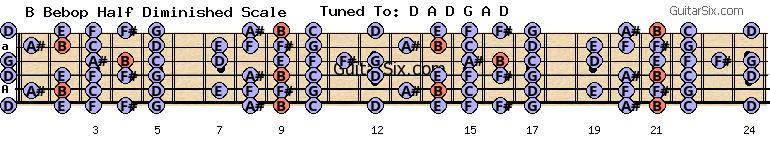 d-a-d-g-a-d b bebop half diminished scale for guitar