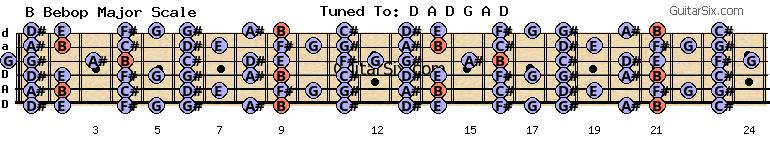 d-a-d-g-a-d b bebop major scale for guitar