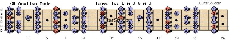 d-a-d-g-a-d b g# aeolian mode for guitar