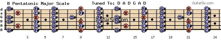 d-a-d-g-a-d b pentatonic major scale for guitar