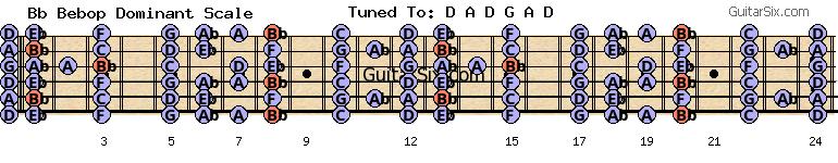 d-a-d-g-a-d bb bebop dominant scale for guitar