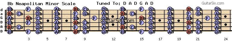 d-a-d-g-a-d bb neapolitan minor scale for guitar