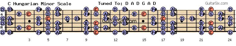 d-a-d-g-a-d c hungarian minor scale for guitar