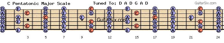 d-a-d-g-a-d c pentatonic major scale for guitar
