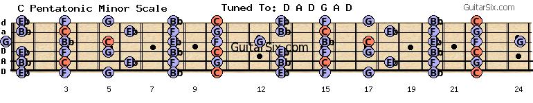 d-a-d-g-a-d c pentatonic minor scale for guitar