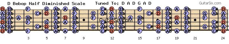 d-a-d-g-a-d d bebop half diminished scale for guitar
