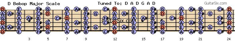 d-a-d-g-a-d d bebop major scale for guitar
