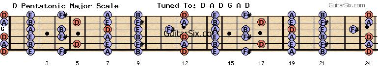 d-a-d-g-a-d d pentatonic major scale for guitar
