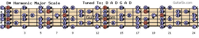 d-a-d-g-a-d d# harmonic major scale for guitar