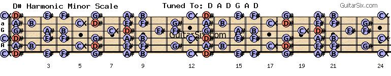 d-a-d-g-a-d d# harmonic minor scale for guitar