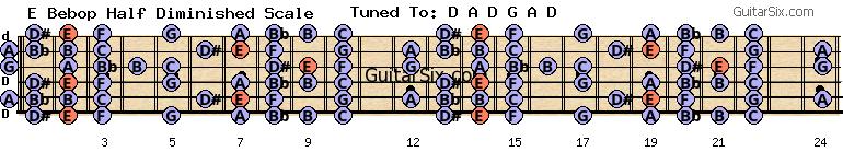 d-a-d-g-a-d e bebop half diminished scale for guitar