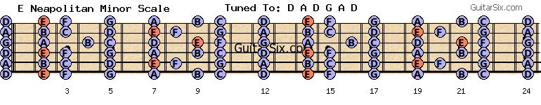 d-a-d-g-a-d e neapolitan minor scale for guitar