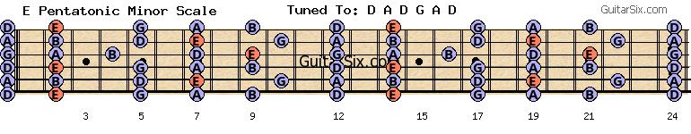 d-a-d-g-a-d e pentatonic minor scale for guitar