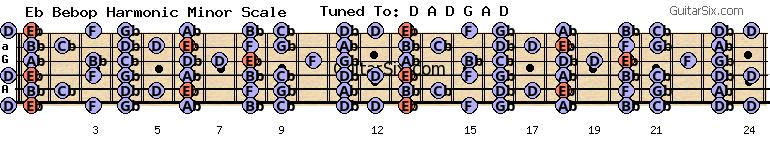 d-a-d-g-a-d eb bebop harmonic minor scale for guitar