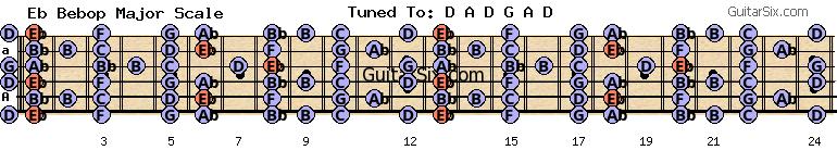 d-a-d-g-a-d eb bebop major scale for guitar
