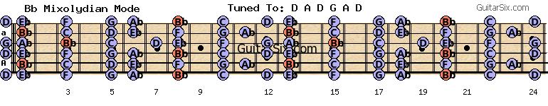 d-a-d-g-a-d eb bb mixolydian mode for guitar