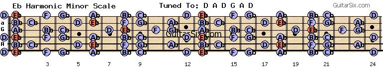 d-a-d-g-a-d eb harmonic minor scale for guitar