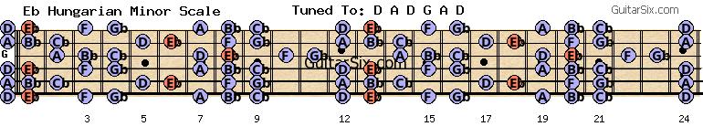 d-a-d-g-a-d eb hungarian minor scale for guitar