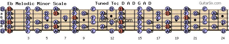 d-a-d-g-a-d eb melodic minor scale for guitar