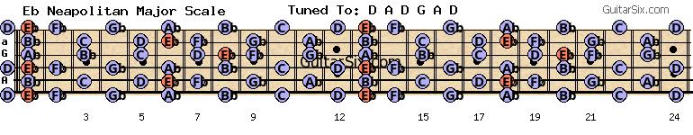 d-a-d-g-a-d eb neapolitan major scale for guitar