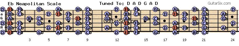 d-a-d-g-a-d eb neapolitan scale for guitar
