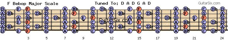 d-a-d-g-a-d f bebop major scale for guitar