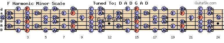 d-a-d-g-a-d f harmonic minor scale for guitar