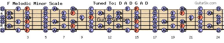 d-a-d-g-a-d f melodic minor scale for guitar