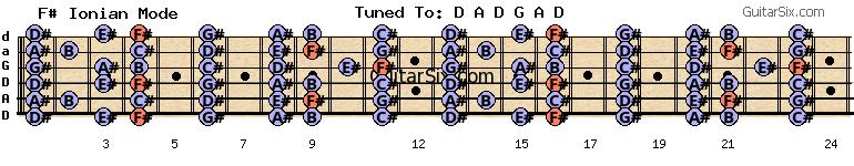 d-a-d-g-a-d f# f# ionian mode for guitar