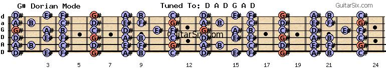 d-a-d-g-a-d f# g# dorian mode for guitar