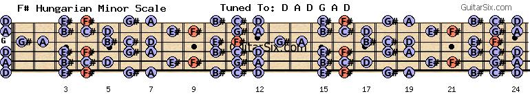 d-a-d-g-a-d f# hungarian minor scale for guitar